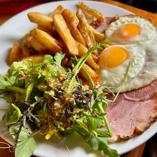Now, the food: three of us ordered traditional fish and chips, and one opted for ham, egg and chips, that other ‘safe’ choice when you want try out a new kitchen. The portions were big but not overwhelming. The fish was perfectly fried in a light, crispy batter and the skin-on chips were clearly homemade, as was the delicious tartare sauce and crushed (not mushy!) minty peas. The ham slices were thick and juicy, home-cooked in the kitchen behind the bar, and the eggs were cooked with a delicate crispy edge - no sad, soggy frying here.